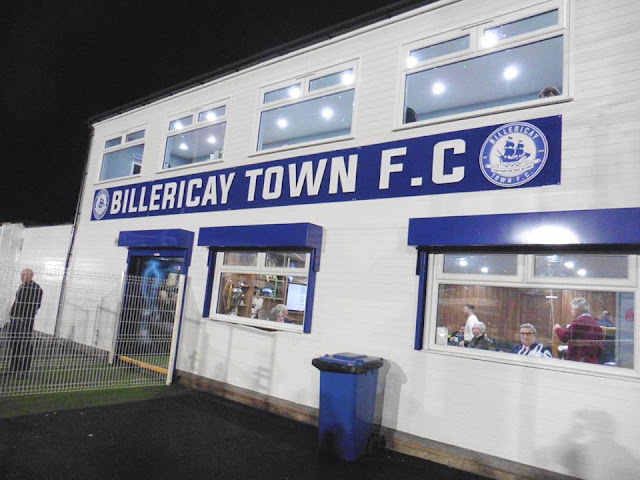 So after a quiet week last week as I took my missus to Winter Wonderland and met up with a couple of her work friends, a week on and it was time to do some Groundhopping again. Although Gillingham were at Carlisle, as much as I would have loved to have gone, it would have been to expensive to go up, stay over, plus match tickets included etc. Plus it didn't sound like I missed much anyway as we crashed out of the FA Cup, which will leave me and other Gills fans a free Saturday in January for FA Cup 3rd Round day. So, with tonight, it was a choice really of either Staines or Billericay. Staines I planned to do on Halloween but after receiving heart-breaking news, in the end I didn't go. I opted for Billericay tonight, would have been interesting to see the likes of Jamie O'Hara, Jermaine Pennant etc, but the only ones I recognised was former Gills keeper Alan Julian in goal, and Jake Robinson up front who used to play for Brighton. Then I did notice Pennant on the bench for Billericay. I arrived to Billericay station just before 7pm, and went in the Fish and Chip shop whilst walking to the ground and bought a portion of chips, which was lovely. I got the ground just after 7pm, only to hear the game has been delayed and will kick off at 8pm due to the Met Police being delayed on getting to the ground with the Dartford tunnel. They probably hadn't have bothered turning up as Billericay overcame them by 3-0. Wasn't as convincing as I thought it would be but Billericay were the better side on the night as they should really as they have spent quite a bit of money. 2 goals for Jake Robinson and 1 for Louie Theophanous got the goals for Billericay. Another reason why I wanted to visit Billericay was The New Lodge has been redeveloped and was done in the Summer this year, I was quite impressed with the ground, a nice tidy little ground it is as well. So, after ticking off another ground, I got home shortly after half 11pm. Next game for me now is a local game on Saturday before Christmas, visiting Rochester United as they take on Hollands & Blair. A good night overall in Billericay.